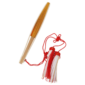 先に行くほど末広がりに広がる形から末広と呼ばれ、永遠に幸せであるようにとの願いが込められている 花嫁用には房飾りの付いたものが、用いられる。 |