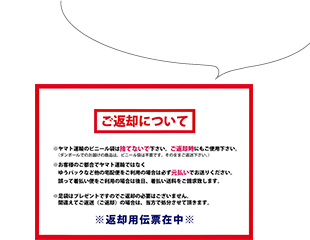※お渡しのヤマト運輸の着払い伝票にて必ずご返却をお願いいたします。