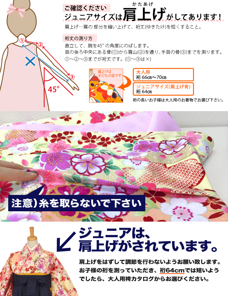 未婚女性の第一礼装。長い袖と華やかな柄が特徴。伝統的な古典柄から新感覚なモダン柄まで染織の技法や文様も多種多様です。 成人式だけでなく、披露宴やパーティーなどの社交着としても着用して頂けます。 ≫ジュニア振袖は肩上げしております。肩上げの糸をとらないよう注意して下さい。 |