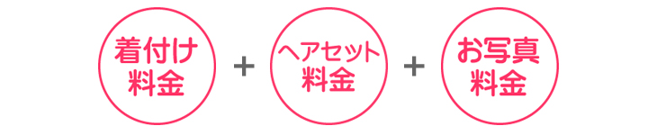 | Cプラン(お着物お持込みの方) 六つ切1枚 | 着付け料金+ヘアセット+写真料金 |