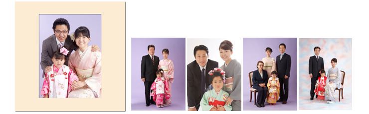 三歳被布…9,500円(税抜) 七歳四つ身…14,000円(税抜) 五歳男の子袴…12,000円(税抜) |