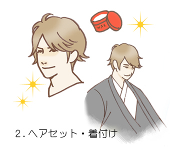 - ご希望のスタイルがあればお申し付け下さい。イメージが固まっていなくても大丈夫。スタイリストにお任せ下さい! 色々ご提案させていただきます。着付けは熟練の着付師が担当。一生の思い出に残るよう、心を込めて着付けします。